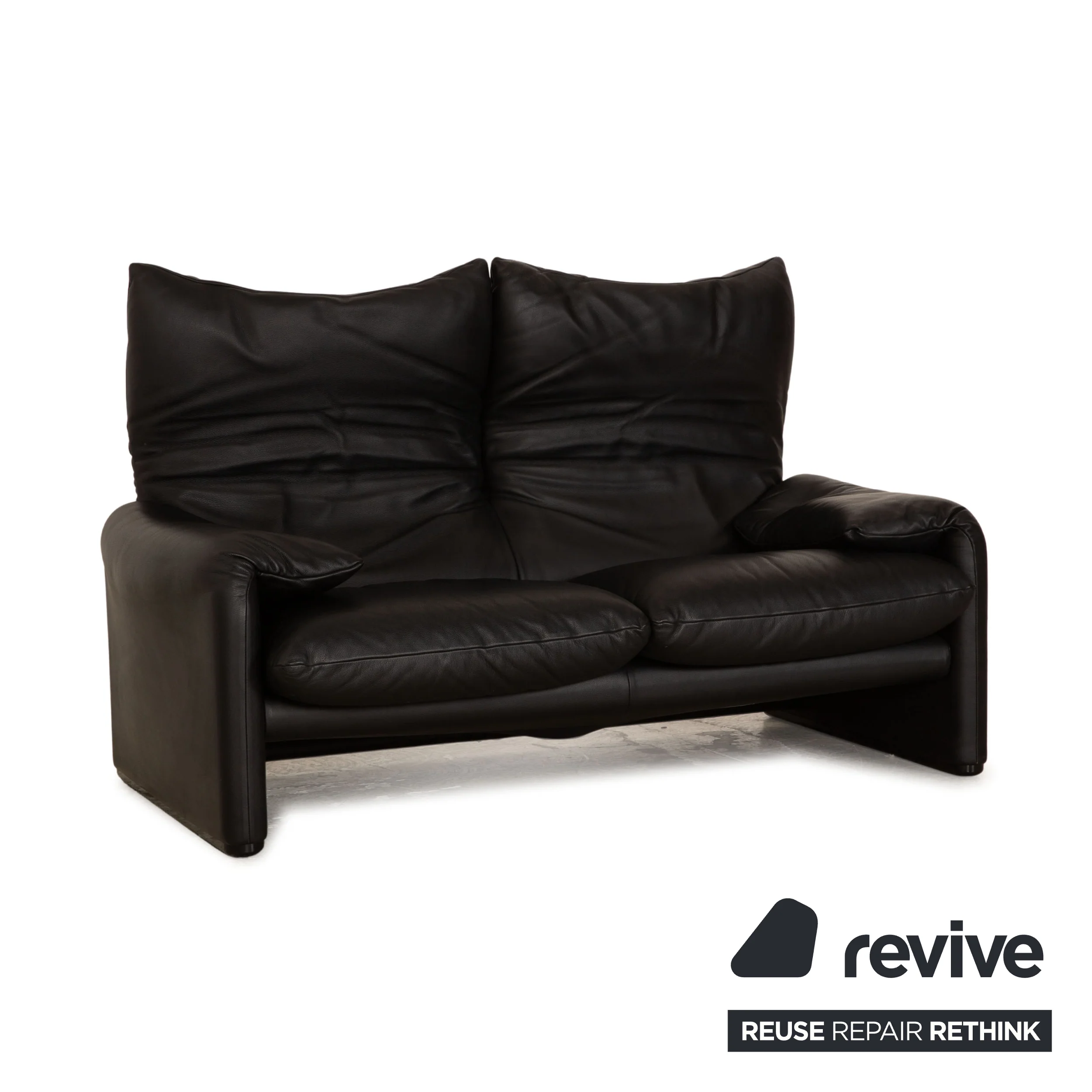Cassina Maralunga Leder Zweisitzer Schwarz Sofa Couch manuelle Funktion