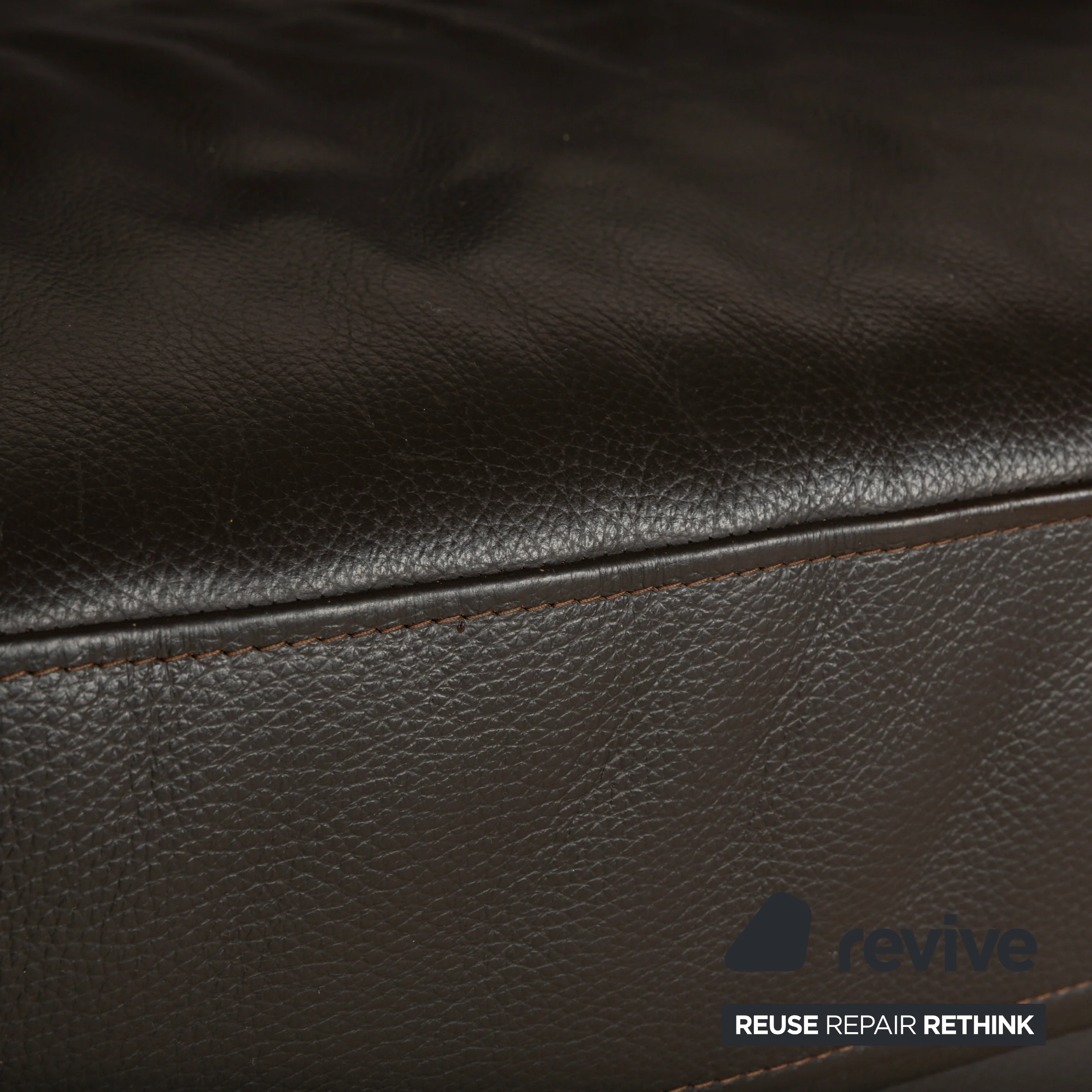 Das Sofa von Ewald Schillig ist mit einem dunkelbraunen Leder bezogen und steht auf sich leicht verjüngenden Holzfüßen in einem ebenfalls dunkeln Farbton. Der Dreisitzer zeichnet sich durch sein klassisches, betont reduziert geometrisches Design aus und ist so leicht mit weiteren Einrichtungsgegenständen kombinierbar. Hohe Rückenlehnen und breite Armlehnen versprechen großen Komfort.