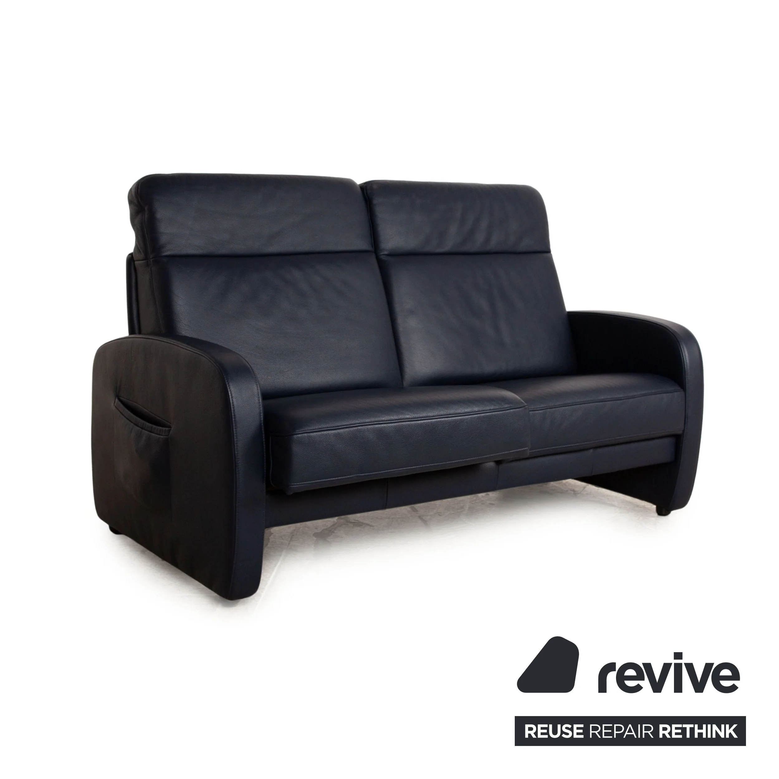 -70%Musterring Leder Dreisitzer Blau Schwarz Sofa Couch manuelle Funktion—